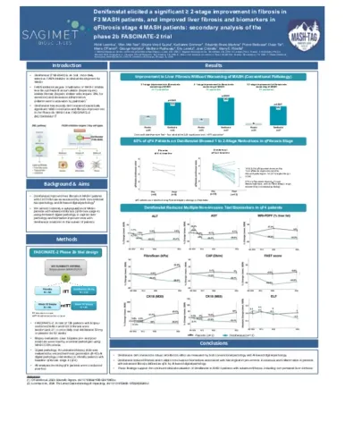 Denifanstat elicited a significant ≥ 2-stage improvement in fibrosis in F3 MASH patients, and improved liver fibrosis and biomarkers in qFibrosis stage 4 MASH patients: secondary analysis of the phase 2b FASCINATE-2 trial